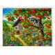 Twelve quiet encounters with the creatures that share our gardens. This calendar features tender illustrations of familiar animals in seasonal garden scenes: a squirrel leaping through autumn leaves, a blackbird nesting in spring shrubs, a starling perched in a blooming cherry tree, a marten peeking from the barn, a hedgehog wandering across the terrace, and a snail nestled among ripe strawberries.