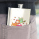 The product is a good size and came exactly as it was pictured. The lid is not attached to the flask, which could be dangerous on drunken nights... The print came out surprisingly well and looks very sharp. Would definitely recommend.