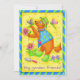 "My Garden Friends" Garden Club invitation will create a smile with those receiving this it. This gardener dog loves his garden and friends, dragonflies. He laid down his garden space to give a heart warming smile to a dragonfly resting on his paw. The dog is dressed in a blue vest, green boots and a green garden hat and is holding a flower while conversing with the dragonfly. Plants with purple and pink flowers are in the garden. The background is yellow with orange dots and the border is blue with green stripes. This adorable Gardener Dog will warm your heart.