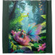 A tiny girl and a butterfly with iridescent wings perched on a giant flower in a lush jungle, accompanied by a colourful toucan. Large leaves and vibrant flowers surround them, creating a magical, whimsical scene. Digital Art