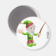 Illustration of a cute happy waving garden gnome elf character or mascot with a fishing rod