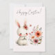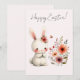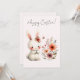 A gentle white bunny adorned with a floral crown sits beside a vibrant bouquet, while a butterfly flutters nearby. This soft, pastel-toned card captures the serenity and beauty of Easter, making it a heartfelt choice for spring greetings.