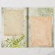 A pale green and gold background with watercolour foliage and old parchment effect collage pages. Perfect for creating gardeners journals, notebooks, scrapbooks or collages.