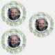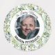 An elegant funeral memorial celebration of life adhesive/waterproof sticker with All Types of Greenery leaves and 1 special photo.
