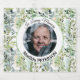 An elegant funeral memorial celebration of life bottle label with All Types of Greenery leaves and 1 special photo.