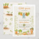 Celebrate your "locally grown" little one with this adorable watercolor farm garden baby shower invitation! Featuring fresh veggies like carrots, cabbage, radish, and pumpkin sprouting from the soil, cute overalls on a clothesline with greens and tomatoes, playful seedling borders, and earthy tones—perfect for gender-neutral, spring, summer, or boho farm-fresh celebrations.