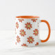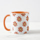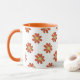 Cute graphical romantic flowers with orange petals and yellow centre. Flowers are repeated all over the printable surface. Mug details are set to matching orange and can be modified. Perfect mug for the garden lover! Will this be someone's favourite mug this Summer?