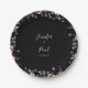 This garden multicolor wildflower wedding cake paper plate is perfect for a modern wedding reception. The design features a multicolored assortment of pink, blush, purple, yellow, white, violet, red, burgundy wild flowers in a black background.