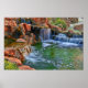 Serene waters streaming through boulders and wildflowers, creating silky waterfalls flowing into a pool below.