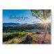 Thinking of you greeting card featuring a sunburst of rays burst between tree branches as the sun goes down over the mountains with Pikes Peak and Garden Of The Gods to the left on a summer evening. Looking for more products? Visit my store: http://www.zazzle.com/timelessmomentsphtgy