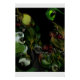 The poster featured the image "Garden of Patience" by Carmen Fine Art in shades of green, yellow, red,, and black in a floral still-life style.