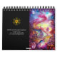 Colourful, whimsical,unique mixed media painting in gold sparkles,vibrant blue,green,red, pink,yellow,teal,purple colours with golden and silver foil, The theme concerns archetypes and mediaeval alchemic symbolism . This is a distilled vision from occidental and oriental collective imaginary searching remote images from the deep in the mysterious garden of the lost shadows. Zazzle calendars offer you the chance to have a high quality printed 14 pieces art collection .When the year is gone they can be separeted and framed as great fine art posters. Enjoy yourself !