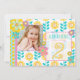 Sweet, whimsical garden flowers monogram birthday invitation card with photo template at front and 3D-look flowers for 2 year old girl.