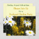 A pretty garden party invitation featuring a bright yellow hollyhocks and white daisies. Customise with all of your party information as desired.