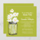 Perfect for an outdoor country garden style party or bridal shower or maybe you just love Mason Jars! Mason Jar with white Gerber daisies. Green Apple (lime) colour with black drawing of a Mason Jar filled with artsy white daisies. If you have any questions on this design or want a colour change please email me paula@labellarue.com
