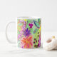 Watercolor flowers abstractly drawn give this mug a delicate and beautiful atmosphere for drinking tea or coffee.