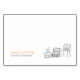 Turn the card around to reveal a romantic scene on the back, showcasing the names of the couple along with the date of the wedding. A beautiful black and white illustration of a picnic hamper, a wine bottle, wine glasses, and a rustic chair stacked with books sets the tone for a relaxed and intimate celebration.