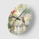 Garden Rose Bird Watercolor Scene Round Clock