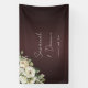 Elevate your wedding decor with our exquisite Garden Roses and Marsala Wedding Banner, a stunning addition that seamlessly blends elegance and personalisation. Crafted in rich Marsala hues, this banner exudes sophistication, while a delicate bouquet of charming white roses adorns the top left corner, symbolising purity and eternal love. Personalised with the names of the bride and groom, along with their wedding date, this banner becomes a timeless keepsake, capturing the essence of your special day. Whether adorning the entrance to your venue or gracing the backdrop of your sweetheart table, this banner creates a captivating focal point, inviting guests to share in your joyous celebration.