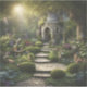 Step into the serene tranquillity of this enchanted fantasy garden, where stone steps lead to a charming gazebo surrounded by lush shrubs and vibrant flowers. Soft sunlight peeks through the treetops, casting a warm glow on the idyllic scene. The intricate details of the gazebo's architecture and the delicate petals of the flowers invite you to linger and get lost in this peaceful haven.