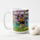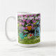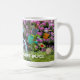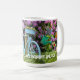 Garden Scene My Happy Place Coffee Mug. A sign of spring! Garden bicycle, flowers overflowing, garden tools, sound familiar. Great for mum, grandma or someone who loves gardening!