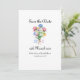 Garden Spring Wedding save the date, a simple minimal white card with watercolor bouquet of spring flowers, daisies and wild flowers with matching color initials. Perfect for a garden or cottage style wedding or a larger garden wedding - very stylish and elegant for all spring weddings where brides are looking for simple, pastel bouquets and elegant handwritten fonts.