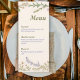 Add a refined botanical touch to your reception with this elegant wildflower wedding menu card. Designed with delicate florals and soft greenery framing the layout, this menu creates a graceful presentation for your wedding meal while complementing romantic garden and nature-inspired celebrations.