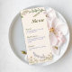 The clean, vertical layout highlights each course in an organized and stylish way, allowing guests to easily view the dining experience you’ve planned. Subtle botanical accents and soft pastel florals give the design a light, romantic atmosphere while keeping the focus on your carefully curated menu.