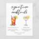 This garden wedding signature cocktails menu paper sheet features simple black typography above 2 of your favourite drinks and their ingredients for your summer wedding bar. A chic Long Island Iced Tea and Lemon Drop Martini drawing add a fun flair to your bar menu. Complete with the couple's names and date for their reception.
