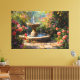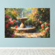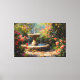 Garden with Blooming Roses and Water Fountain Canvas Print