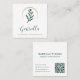 Gardener Custom Floral Logo QR Code Square Business Card... A striking business card for a "Gardener Extraordinaire" with a custom logo of a floral stem set against an abstract sun graphically pointing out the type of service being offered. Your name on front is in elegant emerald green script typography to coordinate with the rich emerald green and light olive colours of the floral design. All text on front and back can be easily revised on the personalisation template. Your QR code for either your website or social media page can be created on the same template by simply typing in the website's URL.
