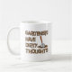 Gardeners Have Dirty Thoughts funny mug. A great mug for any gardener who has their mind on their dirty soil! It features a cartoon trowel. A hilarious gift for any gardener. Do you think about digging in your garden?
