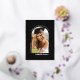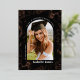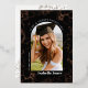 This elegant graduation announcement features an arch shaped photo on a black background with gardenia floral patterns on real rose gold foil. Personalise it for your needs. You can find matching products at my store.