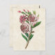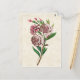 Postcard with a digitally cleaned and enhanced vintage image of a gardenia plant with pink and white flowers on a parchment background. Illustrated by Etienne Denisse for Flore d'Amerique, published in Paris, 1843.