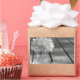 black and white photo of gardenias in a mason jar on silver tray