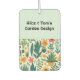 Promote your business as you go out and about, with your own personalised car air freshener. Add your business name on the light green front, above the illustration of garden plants and flowers. The back of the air freshener is green with your business name as before, with a QR barcode for you to customise with your website URL. Passers by who see your air freshener in your parked car or van will be able to scan the code to find out more. A simple, modern and portable way to promote your business, organisation or cause.