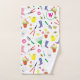Colourful hand towel for gardeners, botanists, allotment owners, and horticulturalists. It features a pattern of gardening tools and equipment and a space to add the monogram letter of your choice.