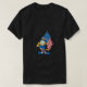 I give wanted to give this a 4 instead of a 5 because these Basic DARK T0shirts run unexpectedly SLIM or Narrow. Which is great if you do not have a potbelly, but I have a paunch. It isn't the shirt's fault that I've got a beer belly. The design and shirt itself is a quality cotton shirt. The color is more of a deep purple, but still a very pretty color. The Basic DARK T-shirts run a bit SLIMMER than the Basic Ts. The neck is a fraction narrower (or seems to be narrower) also. I'm a paunchy middle-aged woman and my neck is 12 inches (31cm) thick and the neckline fell about the same as in the photo of the man, and I had the desire to tug it a bit. So if you're a thick necked man or like loose shirts, be aware these are slimmer shirts. Once I get rid of my lockdown paunch it'll look great. The shirt washed well in cold water with no apparent bleeding. We don't have a dryer, so it hung dry. Did not shrink. Love the colors and the design. The design looks smaller on my shirt than it does on the model on-line. But still, it looks good on the shirt. The printing looks as it does on the model, just the size seems fractionally smaller. Washed garment in cold water, hung dry and design appeared unaffected.