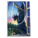 Gargoyle Guardian Art by Traci Van Wagoner prints, posters, accessories, and gifts features a blue and grey stone gargoyle looking back at you from his perch high above the city in the early morning with a textured sunrise sky of yellow, orange, pink, violet and blue. Get yourself a gargoyle guardian today to keep a watch out for you.