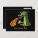 Green dragon cartoon holding a garlic bulb. Flame with the word garlic comes out of his mouth. Custom text.