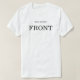 Basic garment with instructions for wearing and not confusing front from back. Many contemporary shirts are tag less and the external labeling insures correct orientation the first time.