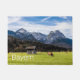 Garmisch Partenkirchen Bavaria with Alpspitze and alps design. Garmisch Partenkirchen in Germany panorama souvenir for Bavaria and ski holidays in the Alps. Garmisch Partenkirchen with Kreuzeck mountain as a souvenir. For backpackers and Bavarian mountains trip.