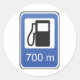 Need to know where the nearest gas station is then consult this sign. It is a gas station road sign. The picture is of a gas pump and then underneath is written 700m. This gas station road sign looks great on these stickers. Perfect for yourself or as a gift
