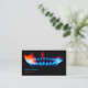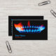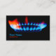 Business card for Gasfitters, Gas Distribution and Emergency Clerks, Gas Furnace Installers, Gas Main Fitters and Gas Main Fitter Helpers, Gas Plumbers and Gas Turbine Assemblers. Business card depicts a light blue gas flare with red edges. Black background.