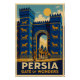 Retro travel poster inspired by Ancient Persia and Mesopotamia, showcasing the Ishtar Gate.