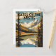 Gates of the Arctic National Park Postcard Design. Gates of the Arctic National Park in Alaska is a vast wilderness area chraacterised by rugged mountains, pristine rivers, and untouched landscapes. Known for its remote location and lack of developed trails, it offers exceptional opportunities for backcountry hiking, wildlife viewing, and experiencing the tranquillity of the Alaskan wilderness.