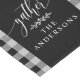 Create a cosy and inviting atmosphere for your holiday gatherings with this Gather Black Buffalo Check Fall Thanksgiving Table Runner. Featuring a stylish buffalo plaid design with the word "Gather" and customisable family name, this table runner is perfect for adding a personalised touch to your fall and Thanksgiving decor. Ideal for family dinners and festive celebrations, it brings a warm and welcoming vibe to your table setting.