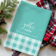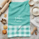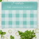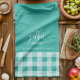 Add a touch of warmth and charm to your kitchen with this Gather Fall Teal & White Buffalo Check Kitchen Towel. Featuring a classic buffalo plaid pattern with the word "gather" and a customisable family name, this kitchen towel is perfect for creating a cosy and inviting feel for your home during the fall and Thanksgiving season. Functional and stylish, it makes a wonderful addition to your kitchen decor or a thoughtful personalised gift.
