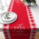 Create a cosy and inviting atmosphere for your holiday gatherings with this Gather Red Buffalo Check Fall Thanksgiving Table Runner. Featuring a stylish buffalo plaid design with the word "Gather" and customisable family name, this table runner is perfect for adding a personalised touch to your fall and Thanksgiving decor. Ideal for family dinners and festive celebrations, it brings a warm and welcoming vibe to your table setting.