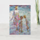 A mother, sunhat gently tilted, guides two children through a shimmering tidepool of color and light. They bend in curiosity, searching for sea-treasures beneath the ripples — shells, stones, maybe memories. The scene captures the innocence of childhood and the quiet strength of maternal presence. Waves glisten in hues of turquoise and lavender, while soft shadows dance in sun-washed sand. There's movement, but also stillness — like a moment suspended in warm salt air.